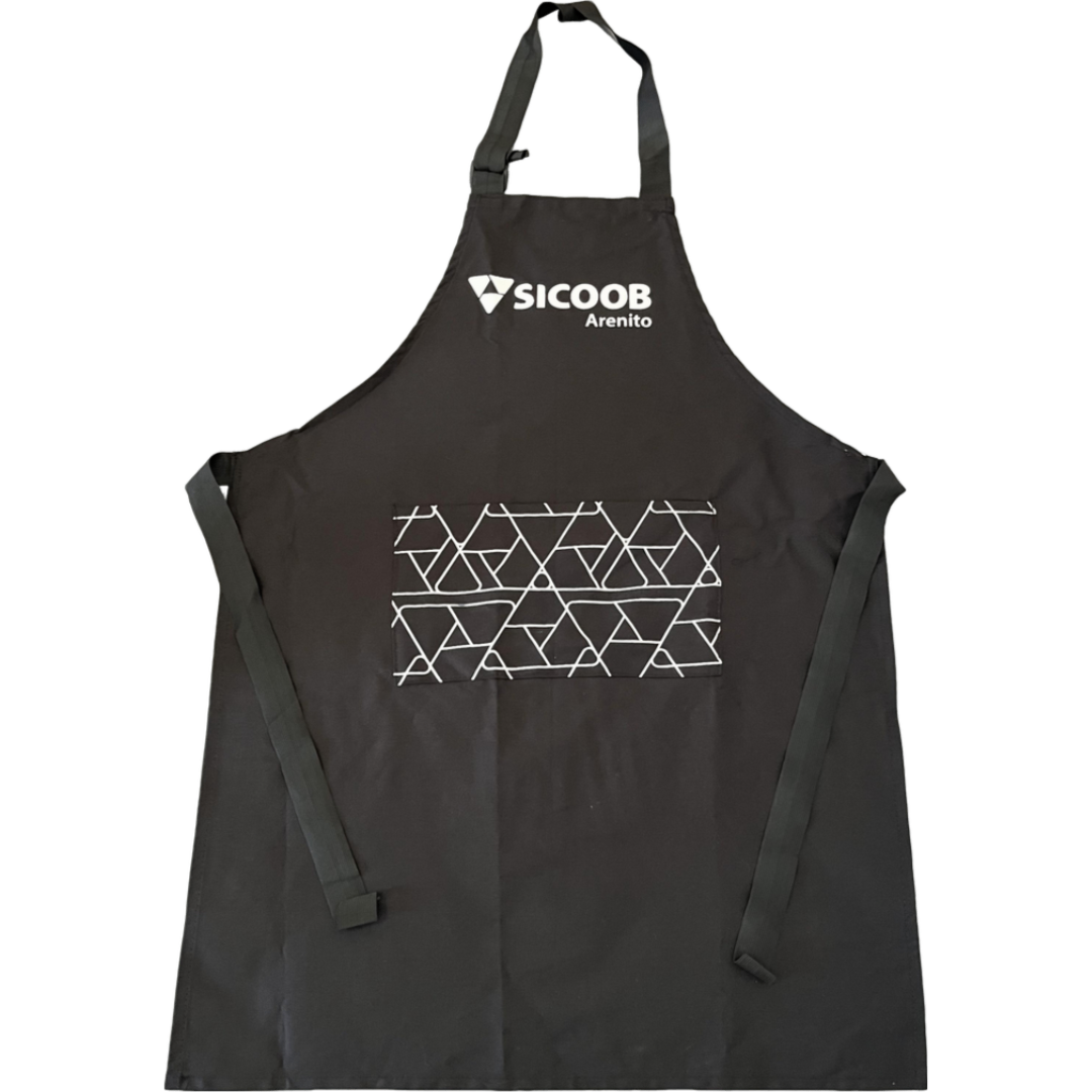 Avental em Brim, com alças regulaveis em poliester, bolso frontal e personalização em silk.